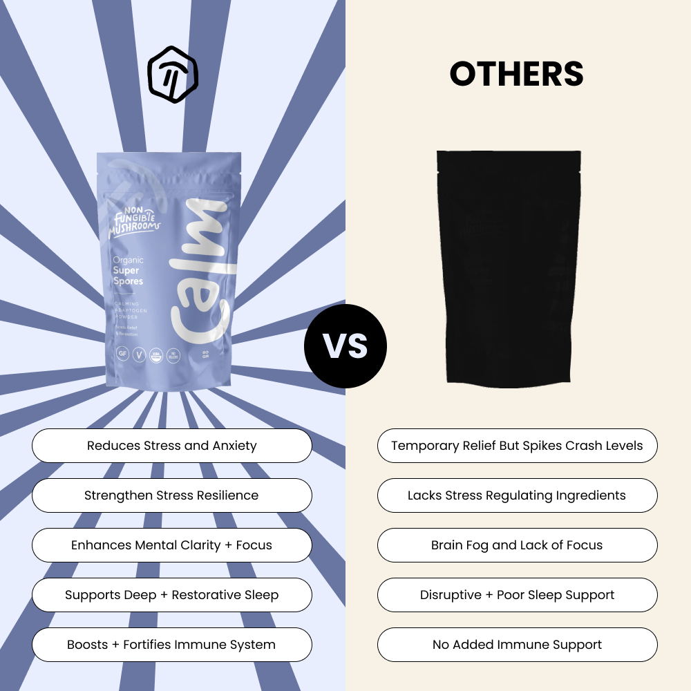 Unlike single-ingredient blends, CALM from Non Fungible Mushrooms combines Reishi, Cordyceps, and Ashwagandha for multifaceted stress relief. This synergy targets emotional well-being, mental clarity, and physical stamina simultaneously. Each batch undergoes rigorous testing to ensure purity and potency, making CALM a standout choice among mushrooms for anxiety products on the market.